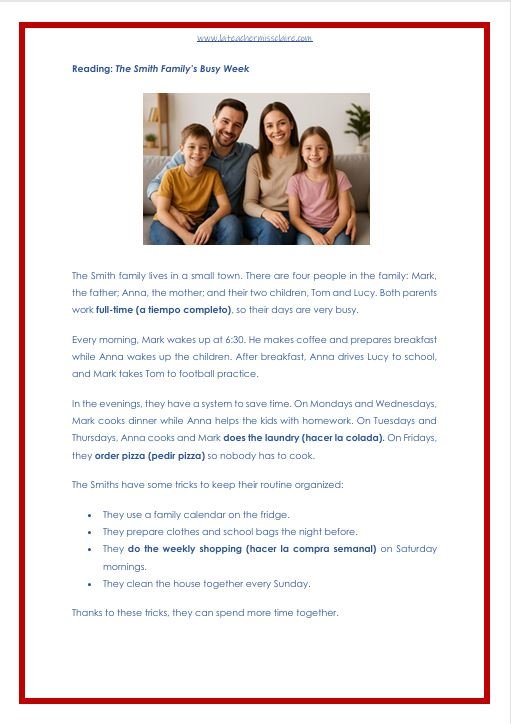 - notes + worksheets (apuntes de cada tema para seguirlo también por escrito, and exercises and practice.